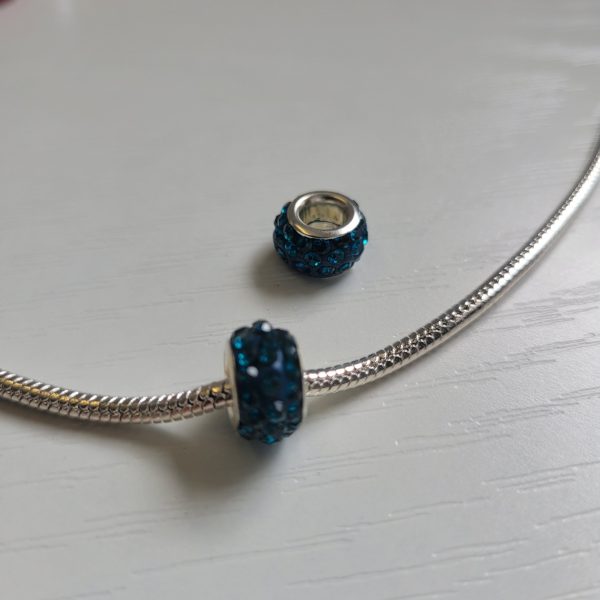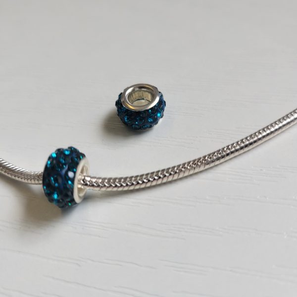 This is not the official Pandora brand. Bright and sparkling ocean blue round European beads with shiny crystal rhinestones. Compatible with Pandora and other European style bracelets. This sale is for two charms only. Does not include the bracelet or anything else.