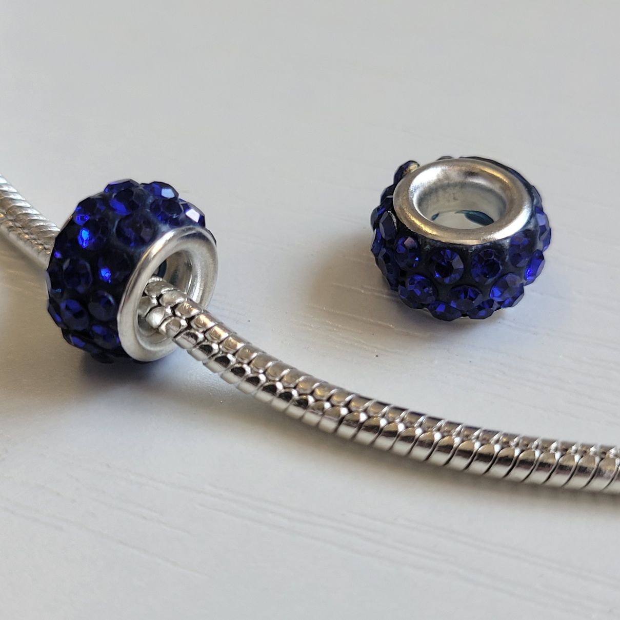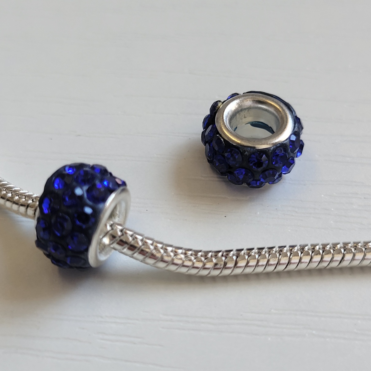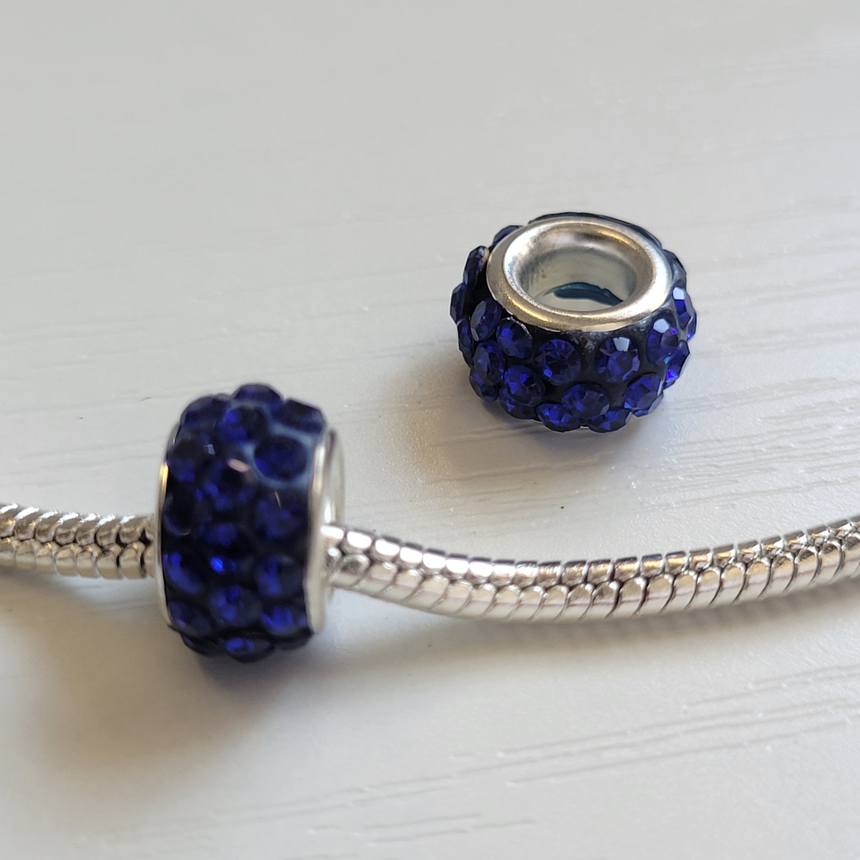 This is not the official Pandora brand. Bright and sparkling royal blue round European beads with shiny crystal rhinestones. Wealso have Ocean blue on a different page. Compatible with Pandora and other European style bracelets. This sale is for two charms only. Does not include the bracelet or anything else.