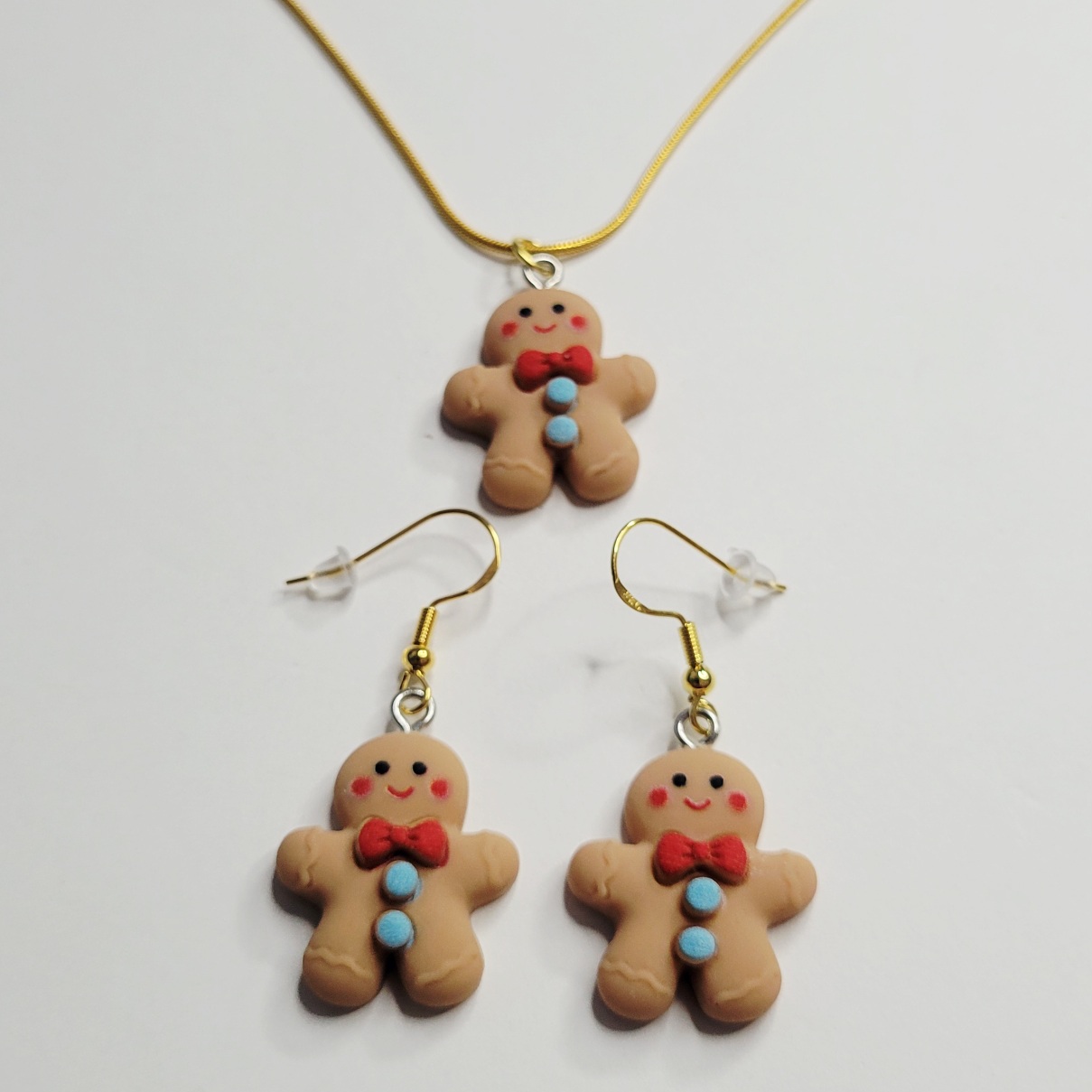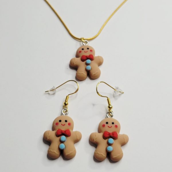 Gingerbread Man Charm Necklace And Earrings Bundle – Choose Style