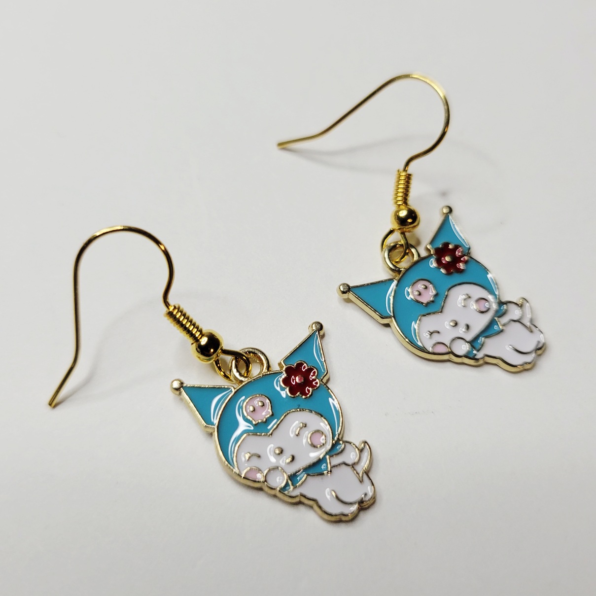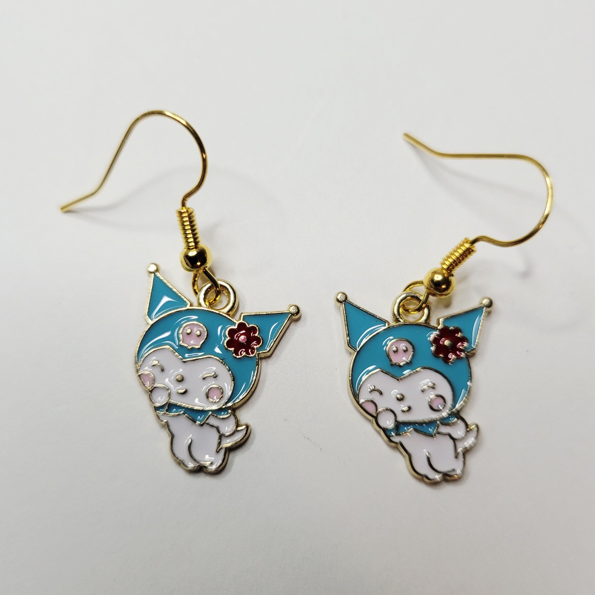 Hello Kitty Blue Kuromi Gold Color Earrings