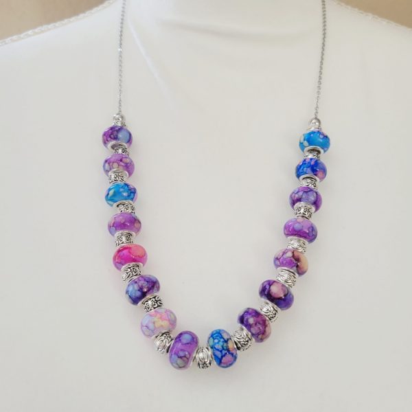 Drift into adventure with the Key West Sunset European Bead Necklace from Chill Charms! Part of our Florida Horizons Collection, this bold piece showcases purple and blue European beads with vibrant, Key West sunset-inspired swirls, paired with intricate silvery spacers for an island flair. The chain is made of stainless steel as is the easy to use toggle clasp. Drawing from the warm hues of a Key West evening, it adds a splash of tropical spirit to your wardrobe. Made in San Antonio, it’s a perfect pick for a standout look or a memorable gift. Get yours now and carry the essence of sunset—only at Chill Charms!