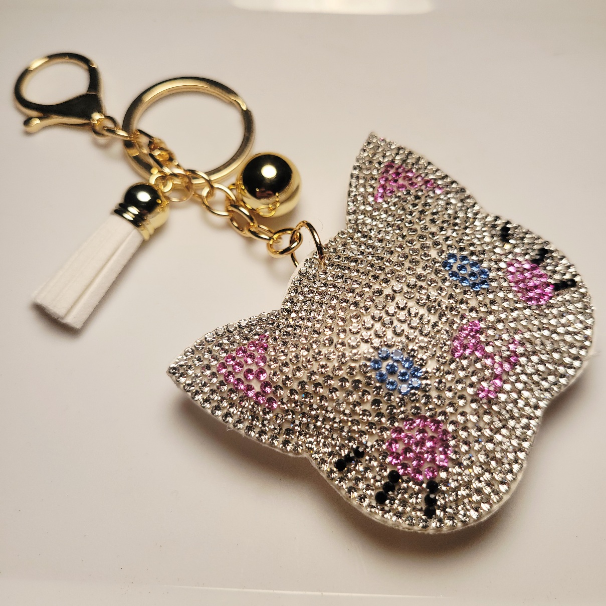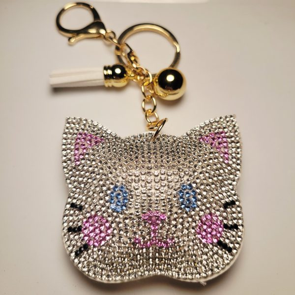 Big cute cat keychain/bag charm. Very sparkly with cute blue eyes! Limited supply!