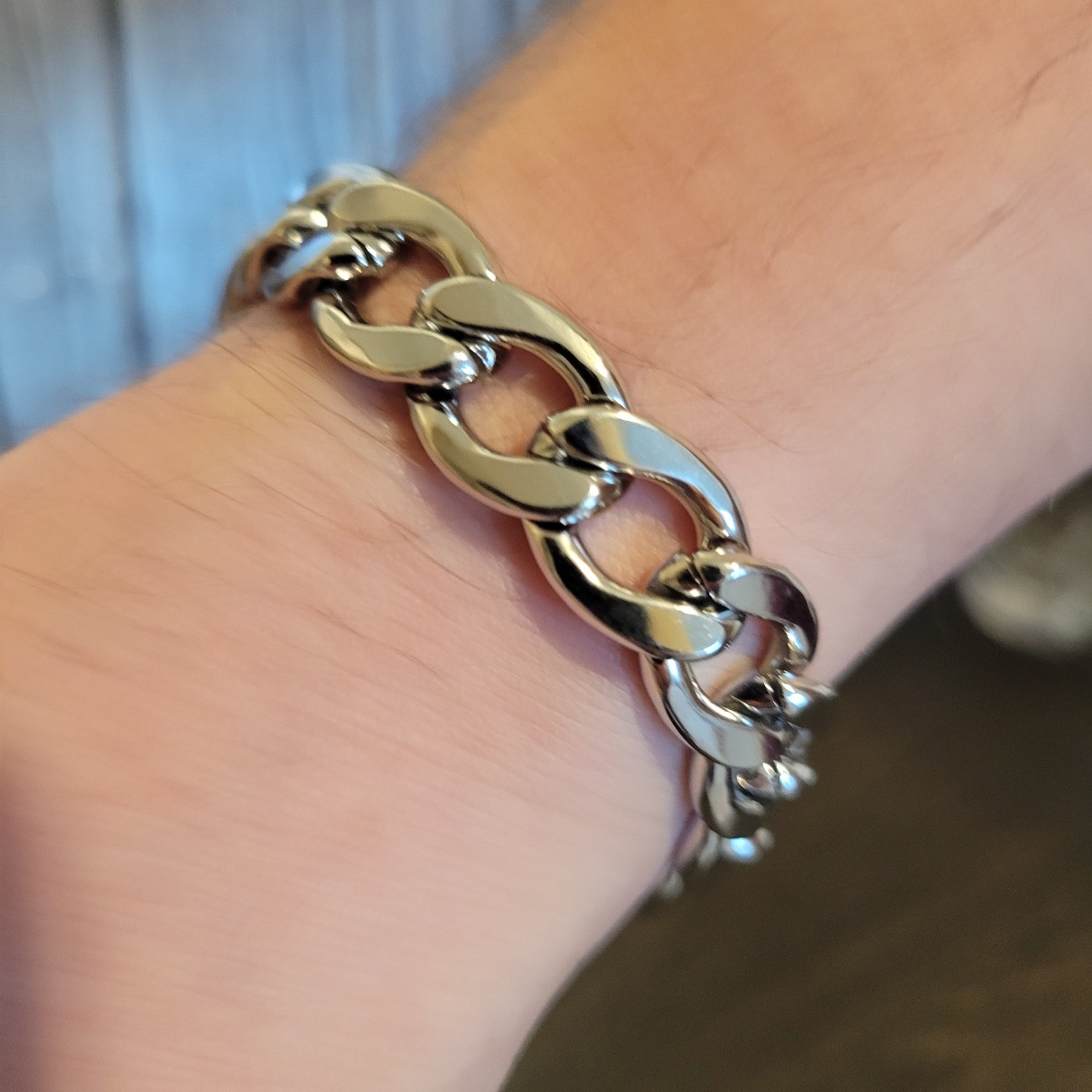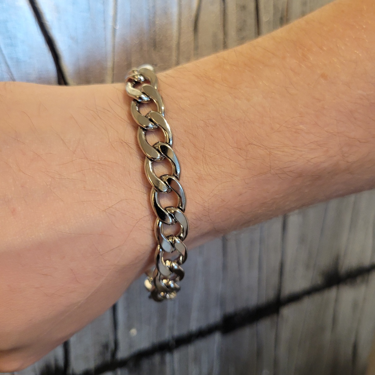 Mens 12mm Stainless Steel Cuban Link Bracelet L