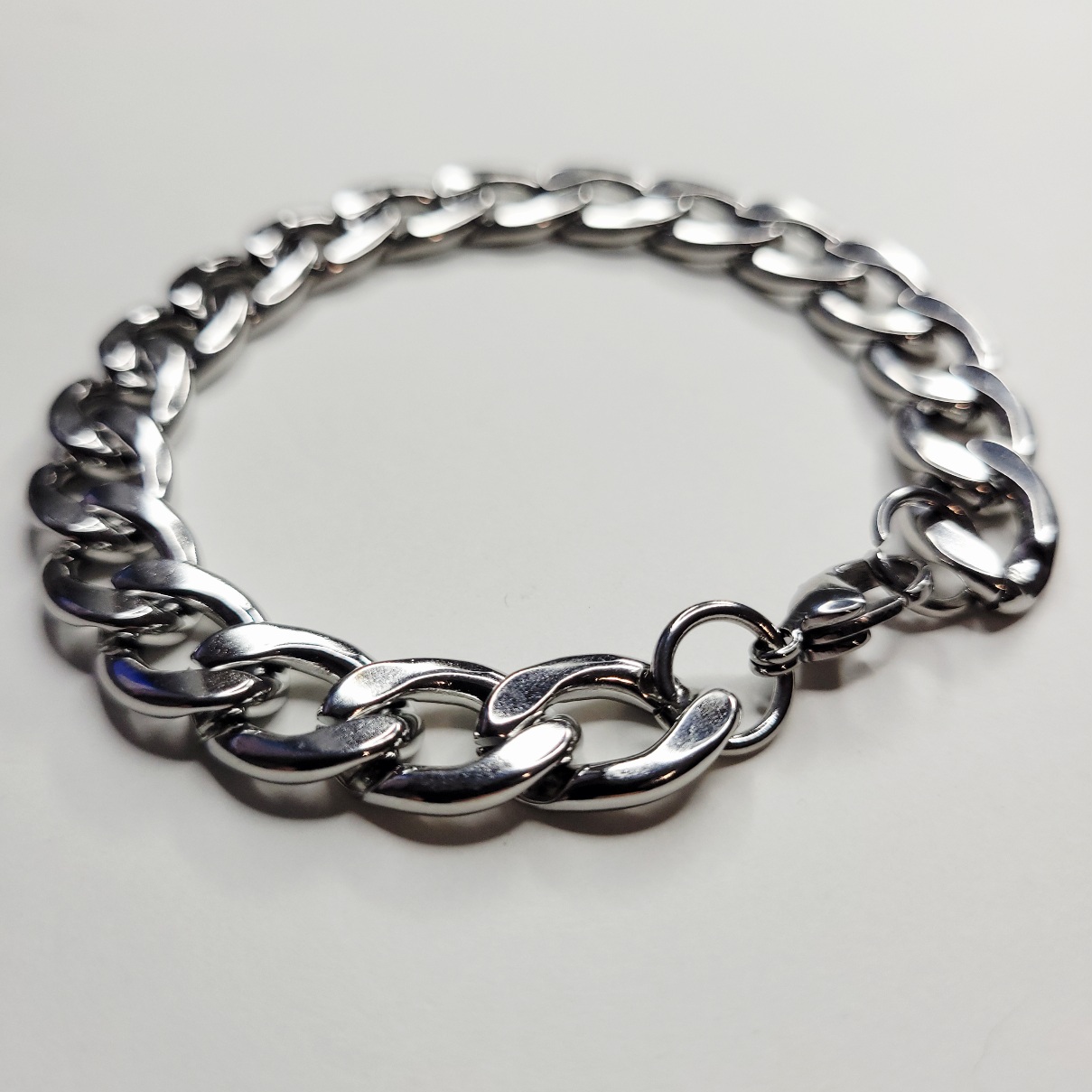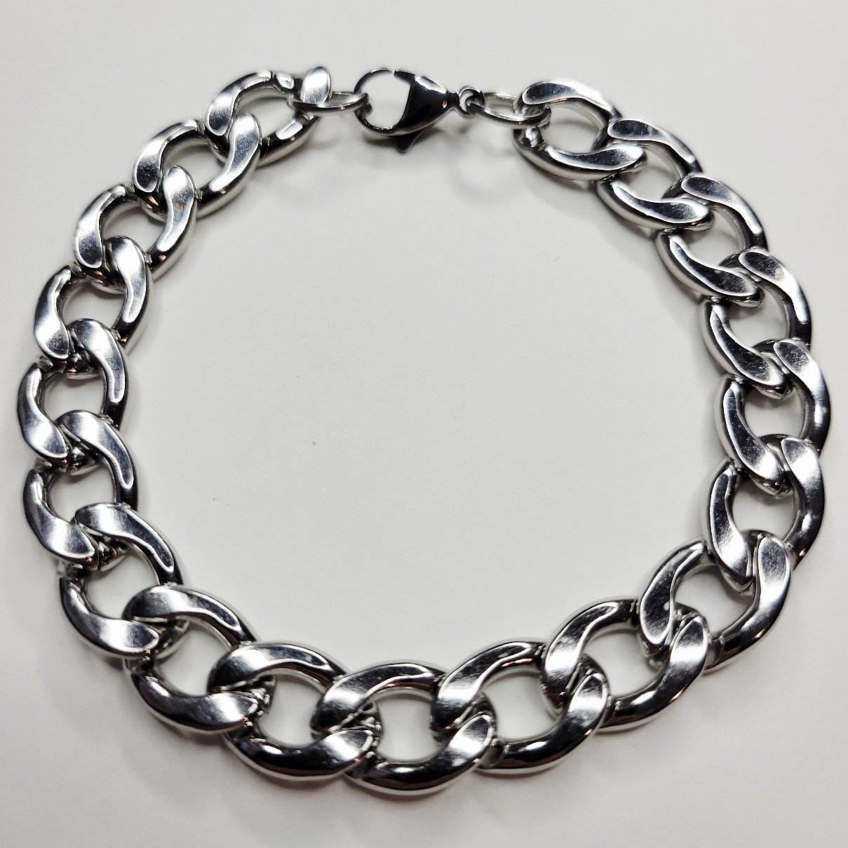 Very nice and shiny 12mm (large!) stainless steel Cuban Link men’s bracelet with heavy Lobster clasp. Same day shipping! Only 4 available. Come see us every weekend at Traders Village #1307 in San Antonio!