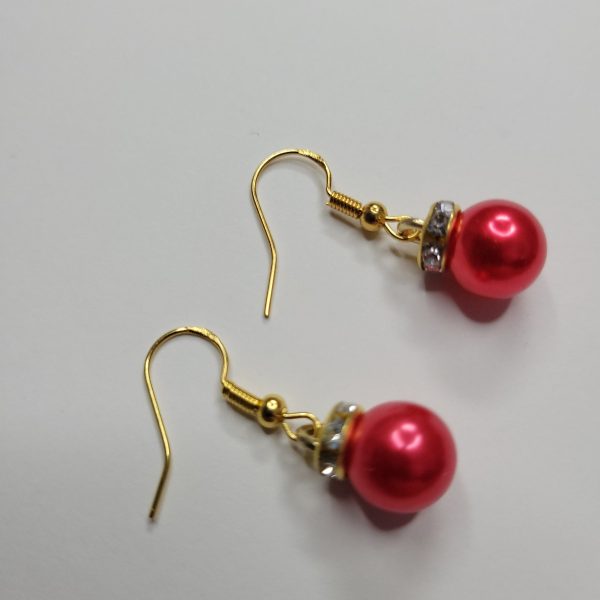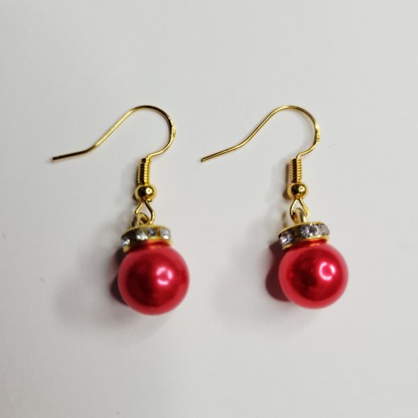 Red And Gold Christmas Ornament Earrings With Rhinestones