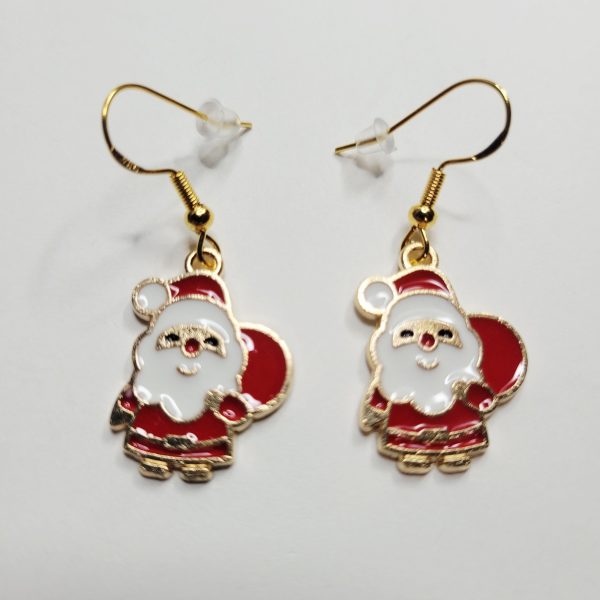 Bright and shiny red, gold and white color Santa Claus charm earrings for Christmas! Hypoallergenic. Same day shipping.