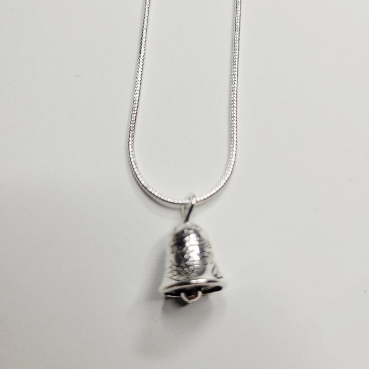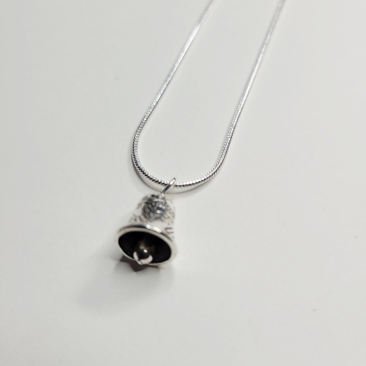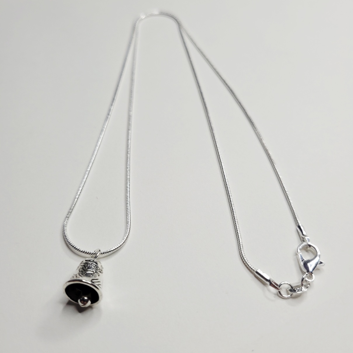 Shiny silver bell necklace, cute but silent! Does not make noise (so it won’t drive you crazy). Limited supply! Same day shipping.