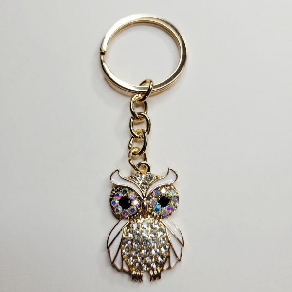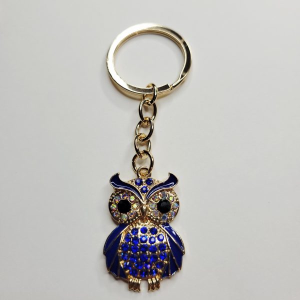 Sparkly Golden Owl Metal Keychain – Blue, White Or Yellow
