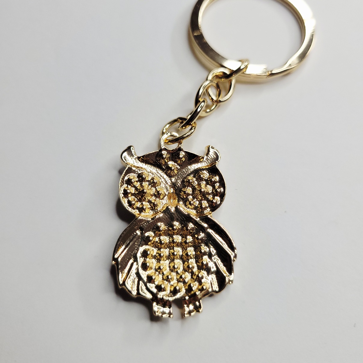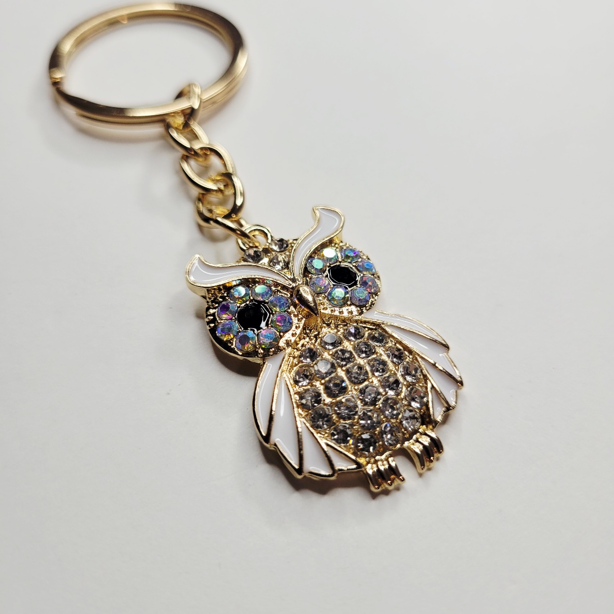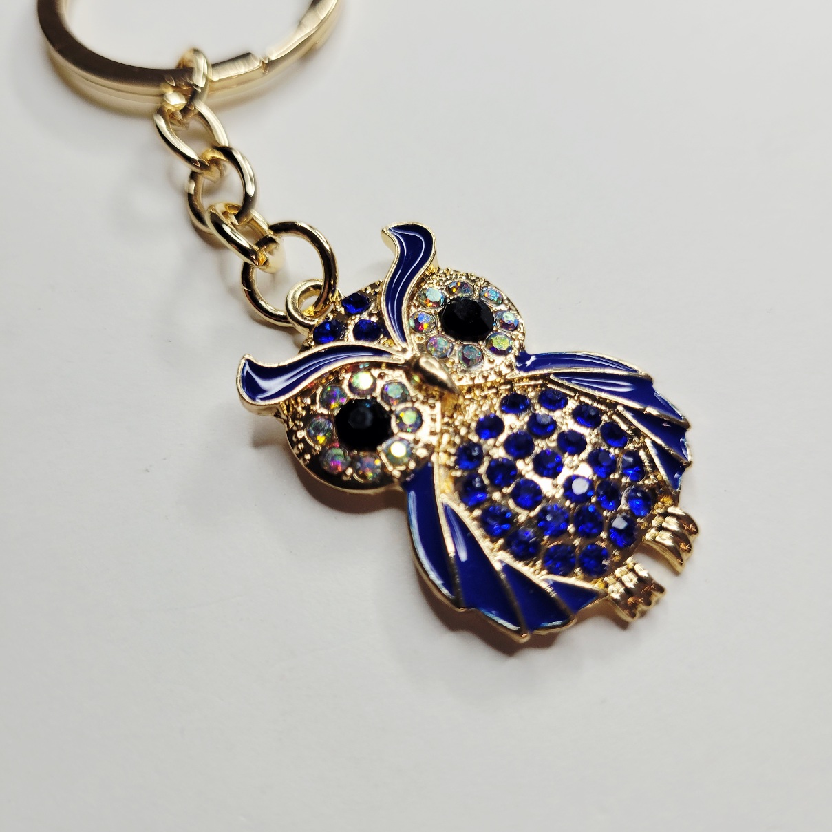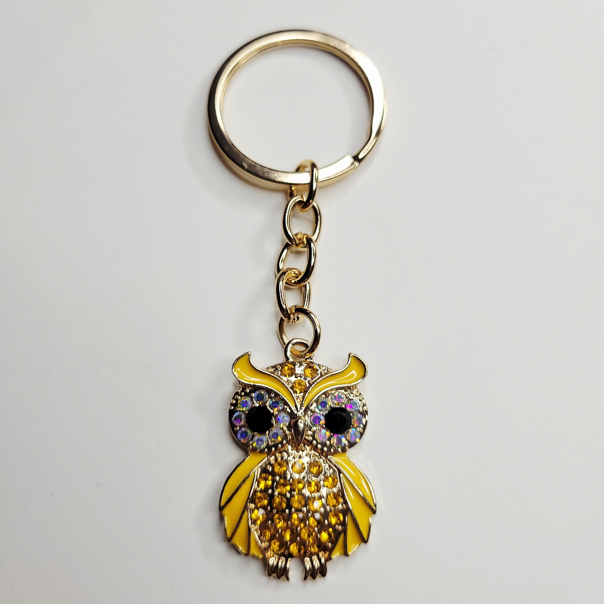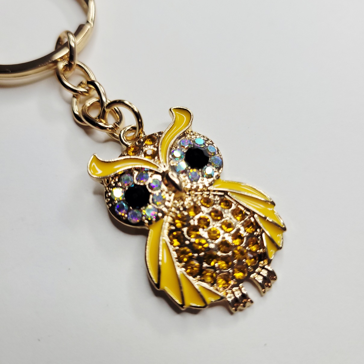 Sparkly Golden Owl Metal Keychain – Blue, White Or Yellow