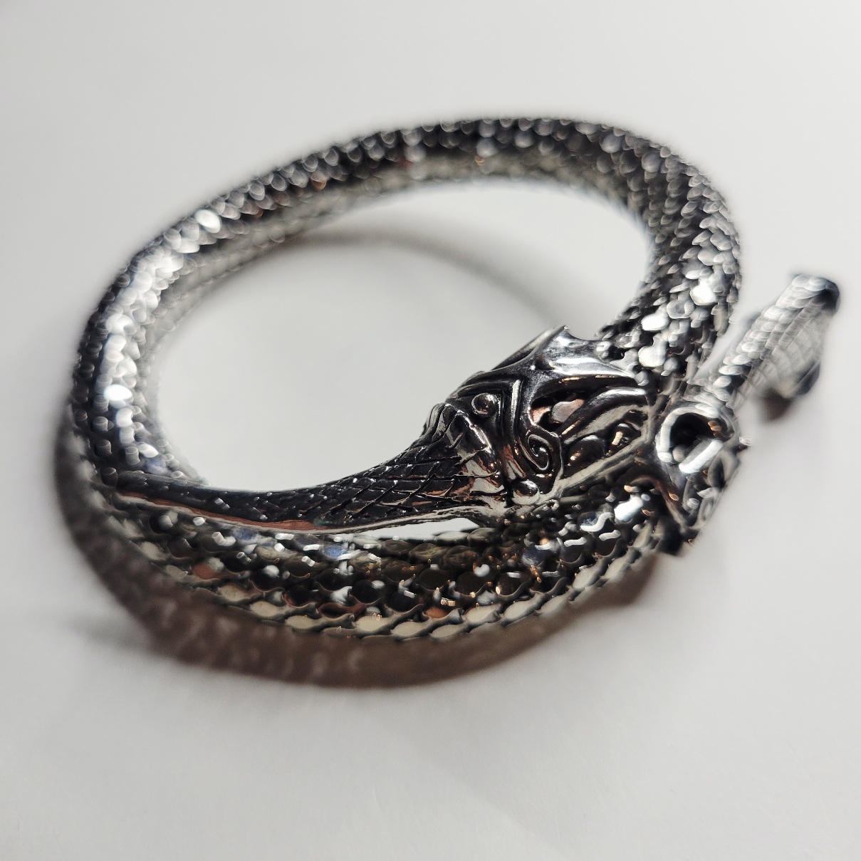 Vintage – Incredible Stainless Snake Serpent Bracelet – Arm Cuff