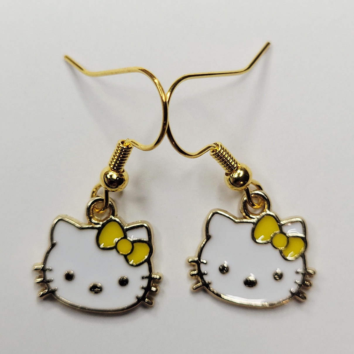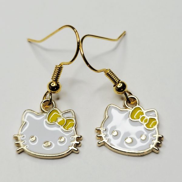 Cute Hello Kitty face earrings with a yellow bow and gold color earring posts! Hypoallergenic of course! Available in many other colors. Same day shipping.